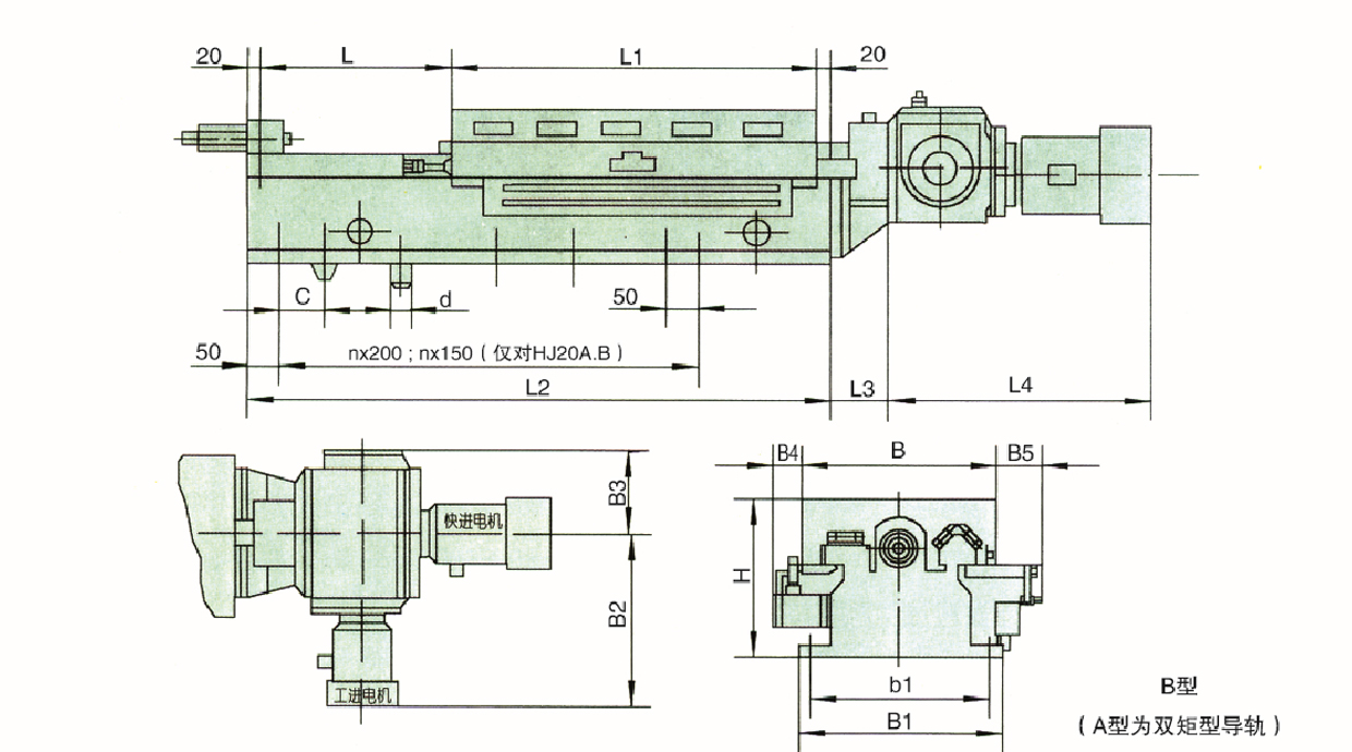 本系列(liè)滑台分A型、B型。A型爲(wèi)雙矩型導軌,爲單(dan)導軌導向,一般用(yòng)于粗加工,如鑽床(chuáng)、銑床、帶有導套的(de)镗床👄等。B型🏃爲一💋山(shān)一矩組合型導軌(guǐ),用于精加工機床(chuang),如采用剛性主軸(zhóu)的镗床,镗孔車端(duān)面機床等。